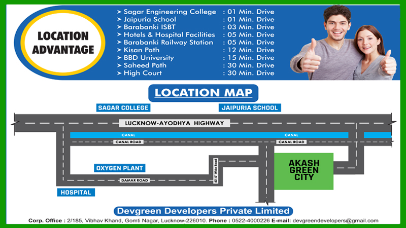 AAKASH GREEN CITY At Barabanki is a premier real estate developmant project in Barabanki, which has launched an ambitious residential project.This project has been designd in such a way the each resident is guarented alife time of privacy and an unhurried pace of life with a completely safe, green and pollution free environment. In deed the property market in india real estate to habe not glimmered to the metro cities but to the capital of U.P has elevated to the coutry. Embraced of lush of greenery all around, signifies to experiance the simple joy of life. AAKASH GREEN CITY is what modern living is all about.